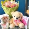 Набор «Сластёна» - это подарок, который включает в себя не только цветы, а еще шарики, мишку, дизайнерскую открытку и конфеты. Весь набор продается комплектом со скидкой.